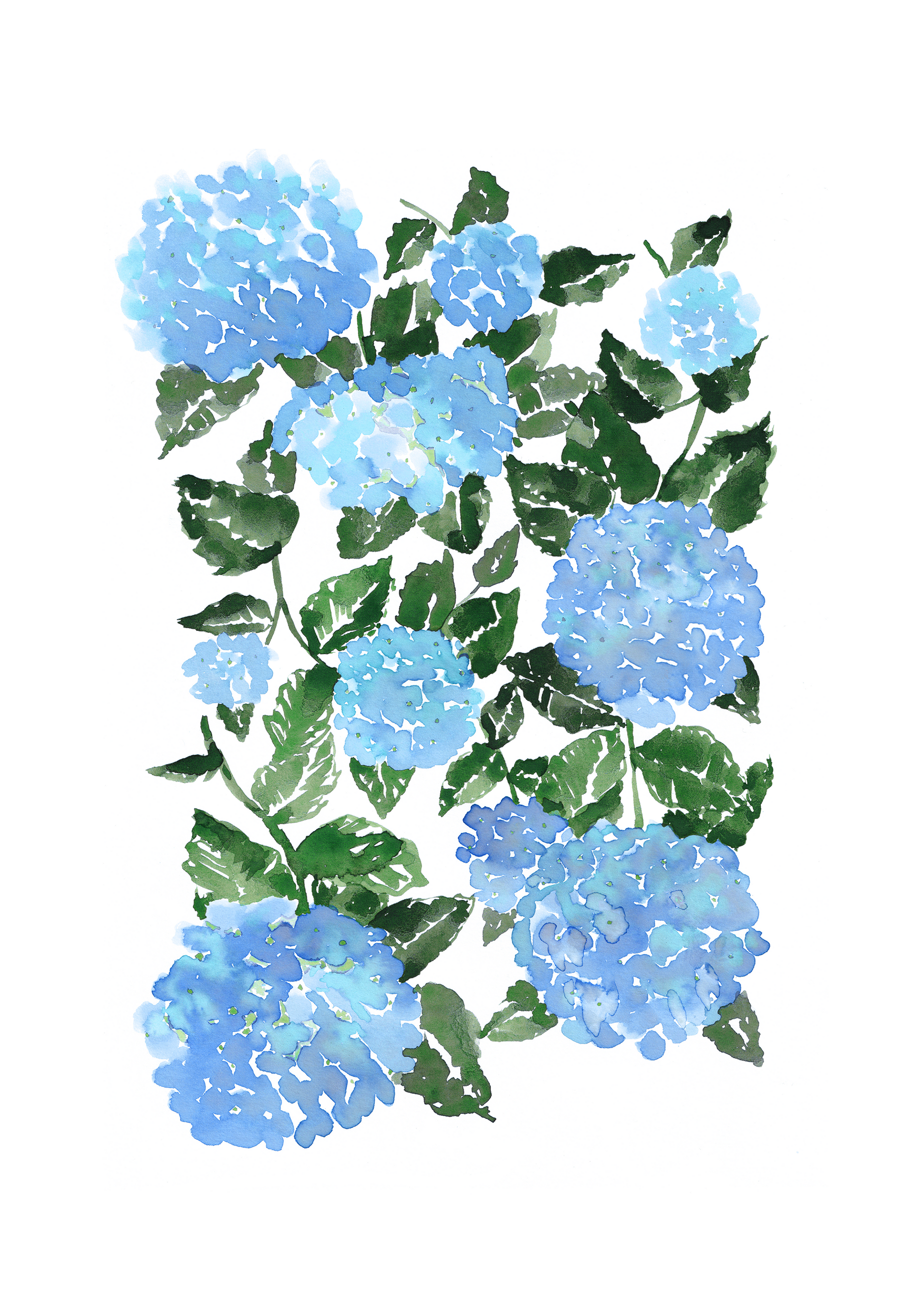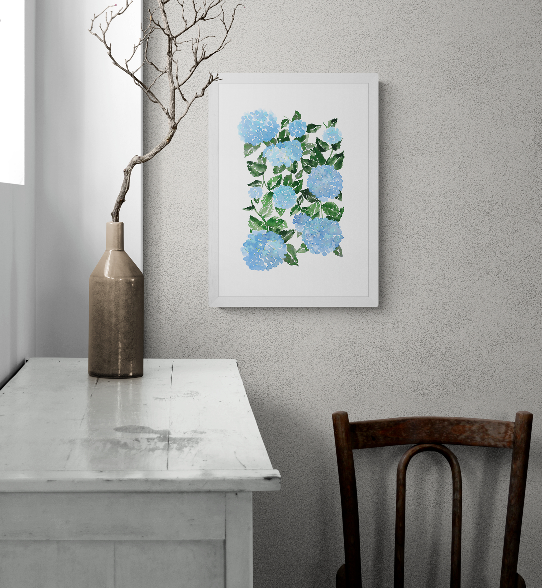 WATERCOLOUR HYDRANGEA POSTER - BLUE